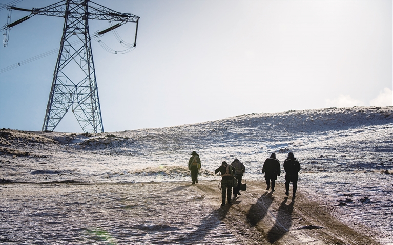 从绿草萋萋至白雪皑皑,从黎明破晓到夜幕降临,沐浴着国家绿色能源开发的春风,“空中三峡”在辉腾锡勒草原拔地而起。宁静的草原上风机运转,源源不断的电能划破夜的沉寂,点亮城市的繁华。在这场特殊而艰巨的攻坚战中,还有很多像王海青、王海龙这样参与工程建设的干部员工,他们早已没有了节假日的概念,整日加班加点、风餐露宿,过着与水泥、电杆、设备为伍的枯燥生活。如今,一座座巍巍耸立的铁塔、一条条熠熠生辉的银线见证着他们胸怀绿色梦想,勇创工程奇迹的楷模精神。
