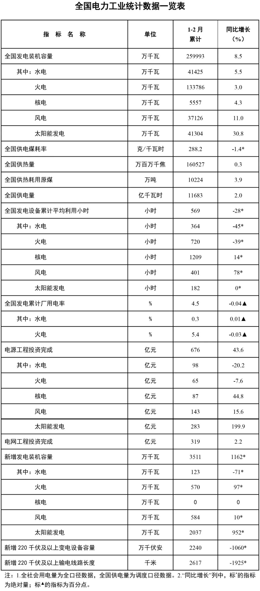 3月21日,国家能源局发布1-2月份全国电力工业统计数据。