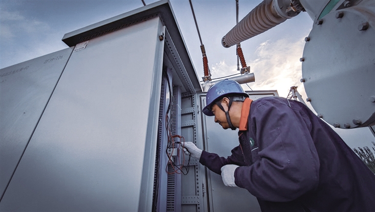 巴彦淖尔供电公司电能计量中心互感器班员工在隆兴昌220千伏变电站开展互感器春季巡检工作。李维伦