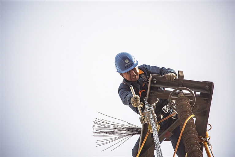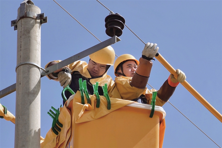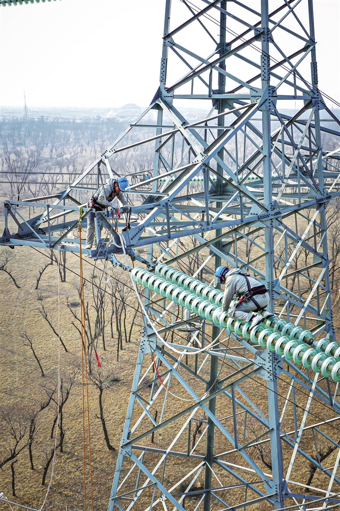 鄂尔多斯供电公司工作人员开展输电线路消缺,确保线路安全稳定运行。 兰宁