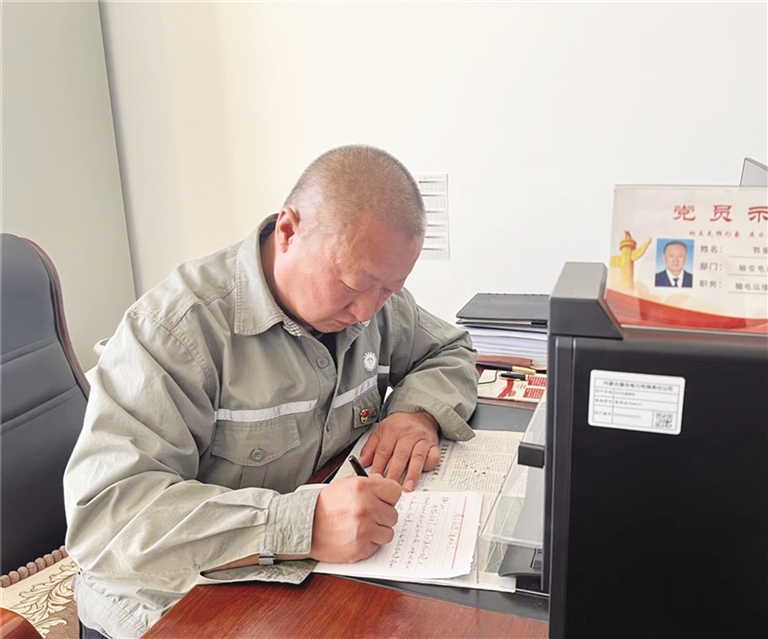 作为一名共产党员,他积极参与迎峰度夏、防洪防汛、停电检修等工作,守护电网安全,在平凡的岗位上践行着蒙电一线职工的初心和使命。作为一名退伍军人,他高标准、严要求,带领输电队伍多次协调相关方赴施工现场开展电力设施保护宣传,综合采取“人防+技防”的措施,保障对蒙供电始终安全可靠。作为一名老师傅,他主动技术攻关,带领QC小组研制创新成果,获多个奖项。作为少数民族职工代表,他始终将铸牢中华民族共同体意识体现在实际行动中,将关心帮扶困难牧民的举动做在日常,用心与心的沟通为跨境供电增添安全力量。