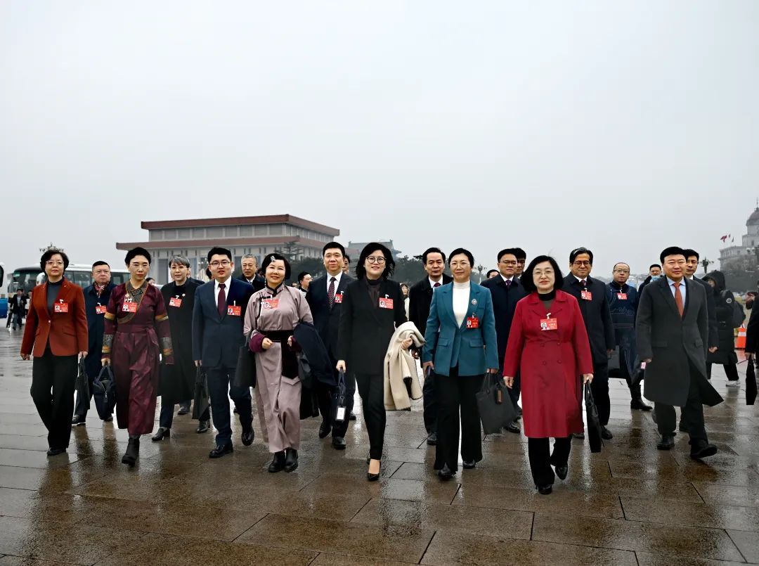 3月5日上午,出席十四届全国人大二次会议的内蒙古代表团代表步入人民大会堂。草原全媒记者 马建荃 摄
