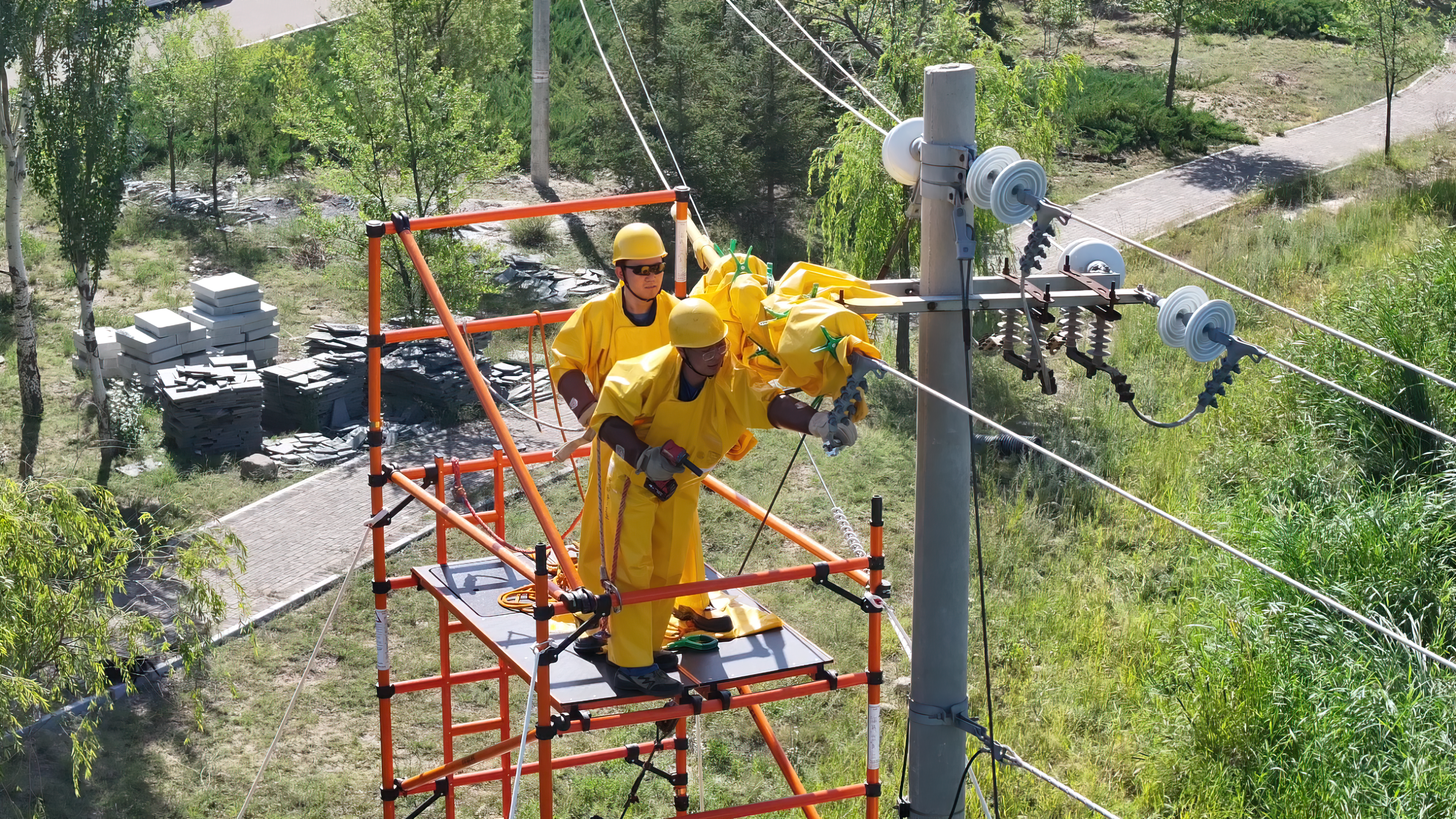 8月23日,在35千伏三园变电站921科普区线92号杆作业现场,鄂尔多斯供电公司配电带电作业处在集团公司范围内首次“解锁”了全新不停电作业的新方式——利用绝缘移动平台开展带负荷拆除隔离刀闸作业任务。此项作业是助力公司推进中压配电网“零计划停电示范区”建设工作、提升客户用电获得感的又一重要举措。作业现场,该处带电班作业人员严格按照标准化工作流程在平台上进行操作,地面人员和现场安全监护人员各尽其责,经过4个多小时的协同操作,绝缘脚手架带电作业顺利完成,确保线路800余户居民用电“零影响”。