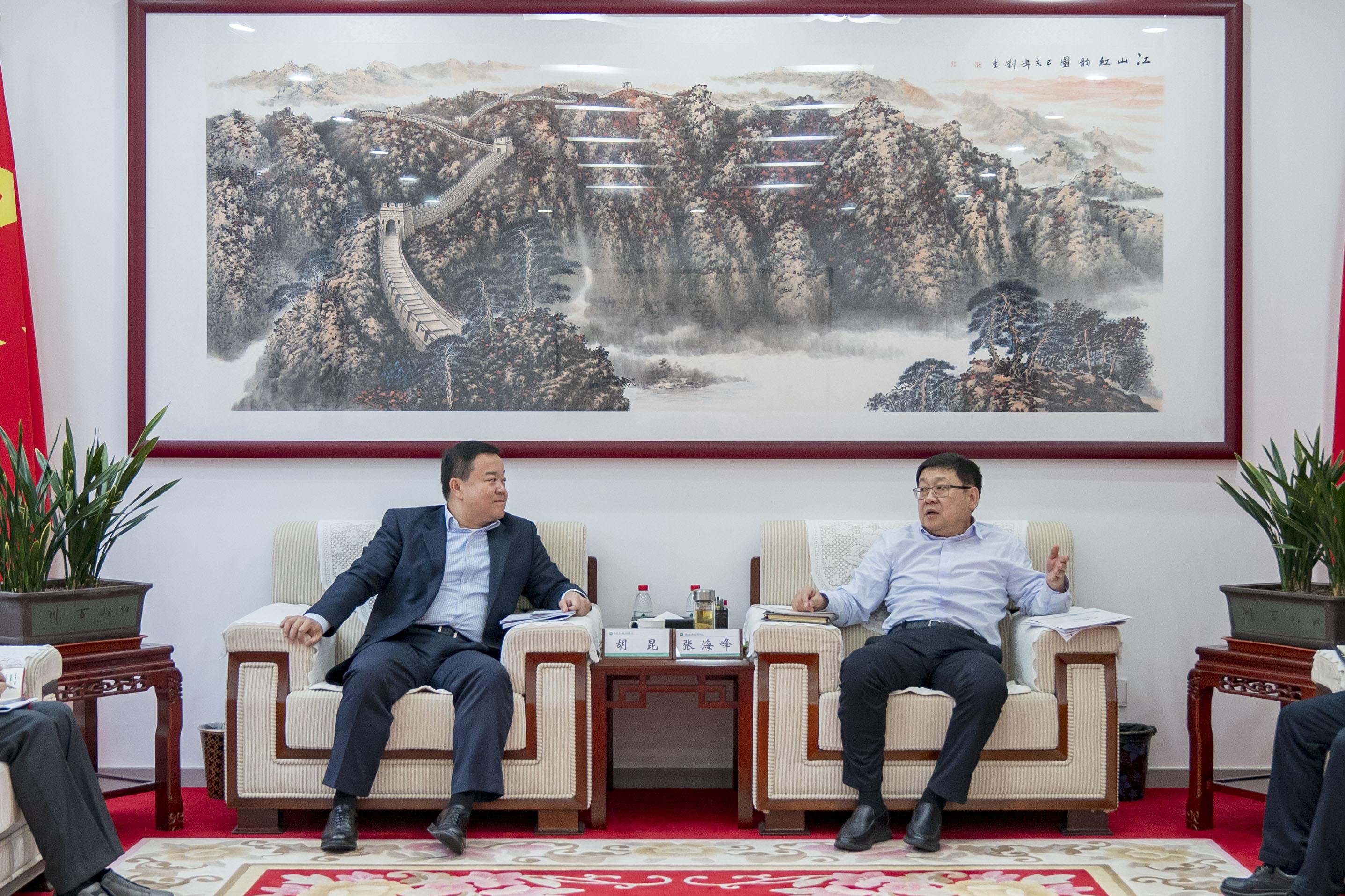 11月15日,中国银行内蒙古分行党委书记、行长胡昆一行到内蒙古电力集团座谈交流,集团公司党委书记、董事长张海峰,党委委员、总会计师张卫江,双方相关部门、业务单位负责人参加座谈。
