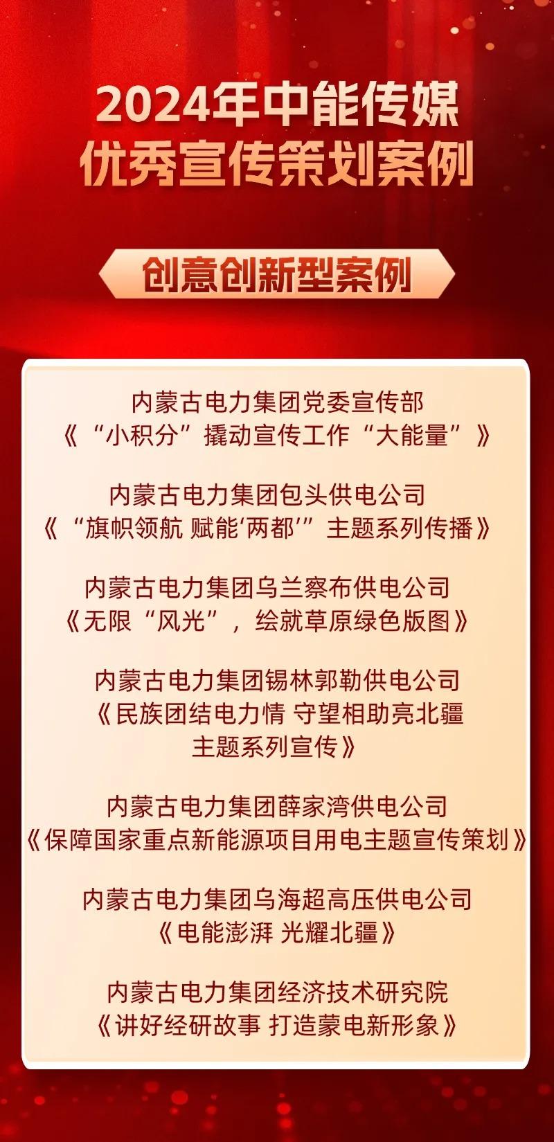 评审阶段,42名资深宣传工作者组成专家评审团以及来自各能源企业单位的50名大众评审团,对现场发布的项目进行打分。最终,经过现场专家评审和大众评选,集团公司党委宣传部、新闻中心、蒙电乌兰牧骑等14家单位推报的《“小积分”撬动宣传工作“大能量”》《基于融媒体数字化发展的立体传播格局构建》《同心同行逐梦远航-敬过往和现在 敬时代和未来》等15项案例获评2024年中国能源传媒优秀宣传策划案例,集团公司党委宣传部、新闻中心、蒙电乌兰牧骑、锡林郭勒供电公司党委宣传部和阿拉善供电公司新闻文化中心等5个集体获评2024年中国能源传媒创新型宣传策划团队(电网类)荣誉称号。