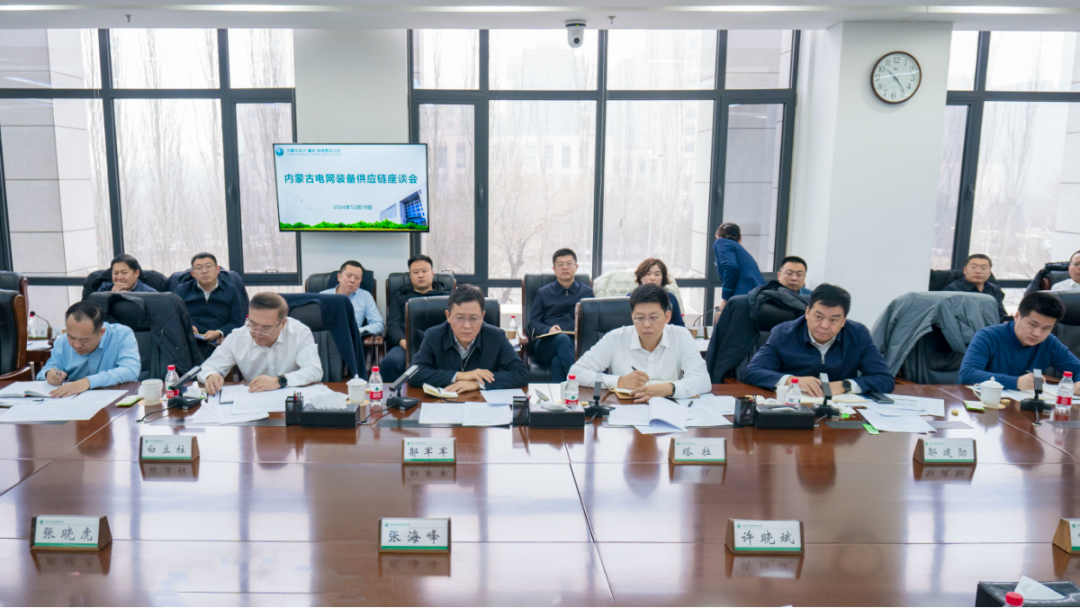 12月19日,内蒙古电力集团召开内蒙古电网电力装备供应链座谈会。自治区工信厅、自治区能源局,以及呼和浩特、包头、鄂尔多斯、通辽四个市政府和能源相关部门负责同志,应邀出席会议并作交流发言。内蒙古电力集团党委书记、董事长张海峰参加会议并讲话,党委副书记、总经理张晓虎主持会议。