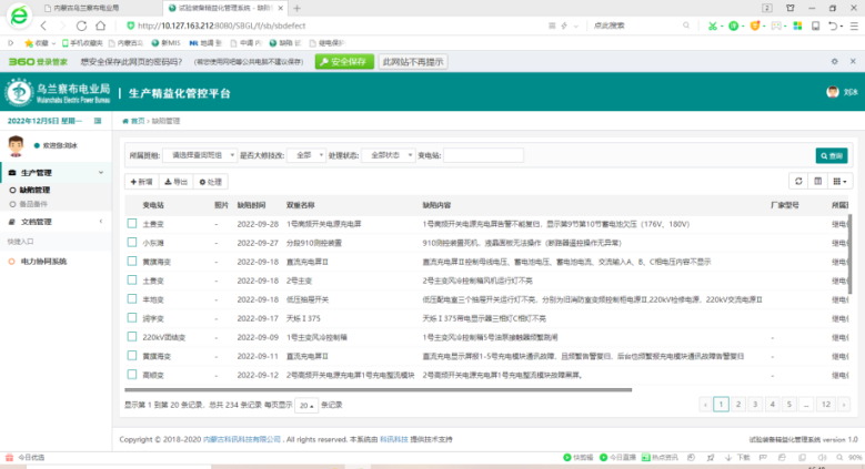 近年来,班组不断引入智能设备与技术,积极构建数字化管理平台。其中,缺陷管理是继电保护专业的重点工作之一,然而部分缺陷仍通过纸质版进行下发,此种方式难以对缺陷的处理进度进行实时追踪,从而无法确保缺陷的完整闭环。为解决此类问题,班组基于数字化平台创新开发了缺陷管理系统。通过统一录入渠道,将精益化平台及纸质版记录的缺陷全面整合并详细记录,从而清晰地看到每个缺陷的处理状态,做到发现问题、安排处理到最终的验收闭环整个流程都能在系统中完整体现,真正实现缺陷全过程闭环管理。