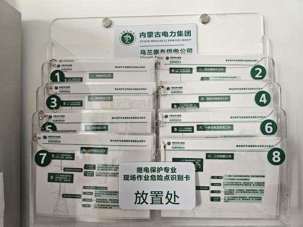 二是创新编制《继电保护现场作业危险点辨识卡》。围绕母线单元、变压器单元、线路单元、母联分段单元、电容器单元、一体化电源系统、二次回路、通用管理八个部分,制作包含80条危险点及预控措施,进一步完善了作业危险点防控体系。在实际工作中,根据不同作业内容,选择相应的辨识卡协助班组在施工现场提前布置防控措施,从而将危险消弭于萌芽,稳筑安全堡垒,确保班组工作的每一步流程都能安全有序进行。