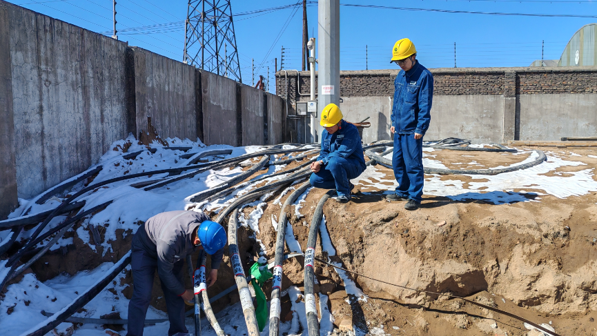 3月19日,在巴彦淖尔市临河区党校小区电网施工现场,身着蓝色工装的电力工人正有序安装智能电表箱,标志该市老旧小区电力设施改造工程全面铺开。