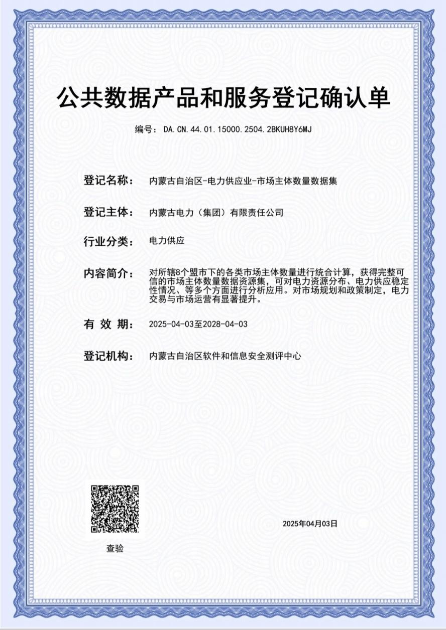 4月3日,内蒙古电力集团开展登记的“市场主体数量数据集”,成功通过了国家公共数据资源登记平台的审核与公示,标志着内蒙古自治区首例电力行业公共数据登记工作圆满完成。这是内蒙古电力集团继完成数据资产入表后的又一新突破,为国家数据要素市场化改革提供了“蒙电样本”。
