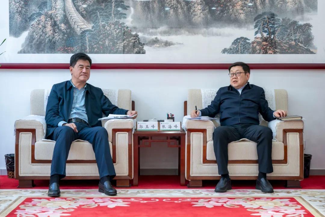 4月21日,锡林郭勒盟盟委副书记、行署盟长郭玉峰一行到访内蒙古电力集团,与集团公司党委书记、董事长张海峰,党委副书记、总经理张晓虎,就深化地企合作、加快推进重点项目建设进行座谈。