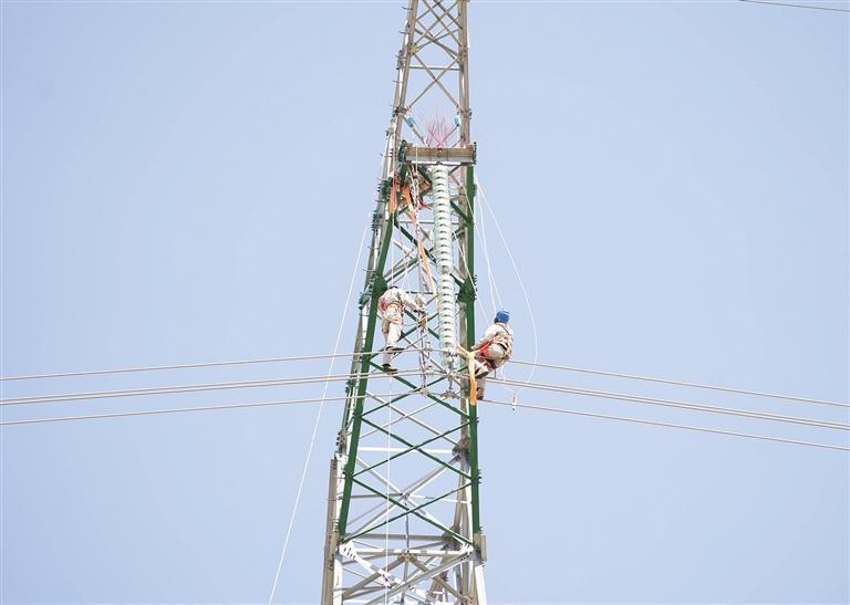 本次停电检修是该线路自2023年投运以来的首次检修。线路为双回线路,总长358.9千米,采取轮停方式,涉及一、二次设备C类检修、隐患排查,414个塔段需全线停电,并同步开展线路登检、预试、导线防振锤更换、绝缘子清扫、自爆绝缘子消缺等10项大型工程,计划完成76条缺陷治理,重点完成240根防舞鞭安装工作。该公司统筹协调优化停电检修工期,做好前期准备工作,合理增派人员,确保检修工作顺利进行。截至目前,已完成总工作量的60%,预计本月底全面完工。