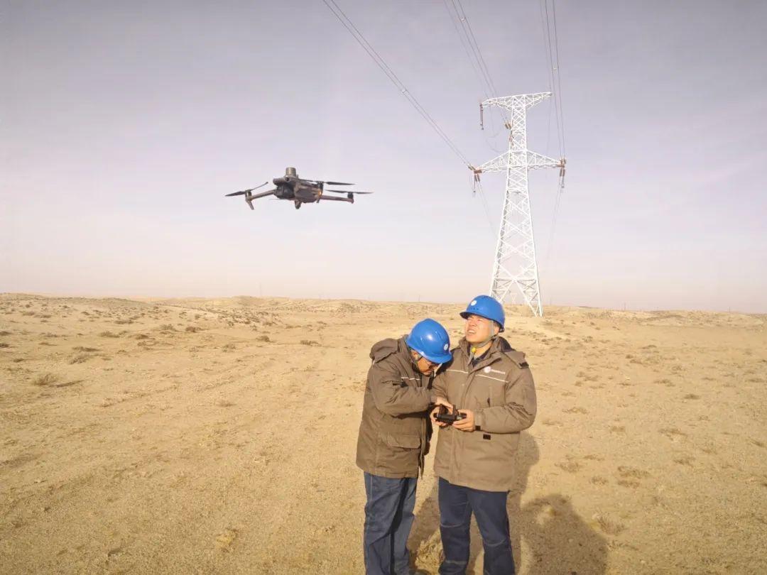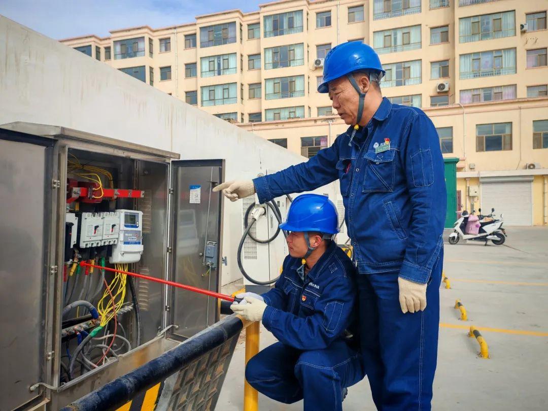 ▲ 阿拉善电力人专注巡检电力设备,在“零碳小镇”建设中,用行动保障绿色能源高效运行,助力巴丹吉林镇低碳发展