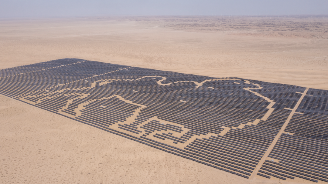 ▲ 五凌阿拉善右旗10万千瓦光伏项目宛如坚韧骆驼,源源不断输送清洁电力,为地区发展注入持久动力
