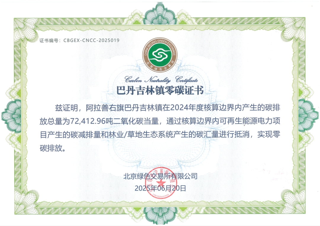 从新能源电力接入到绿色出行保障,从节能减排改造到生态碳汇支撑,阿拉善供电公司以全链条、全方位的服务,深度参与巴丹吉林镇“零碳小镇”建设。未来,该公司将继续秉持绿色发展理念,以更高标准、更实举措,为“零碳小镇”建设和地方经济社会绿色转型贡献更多力量。
