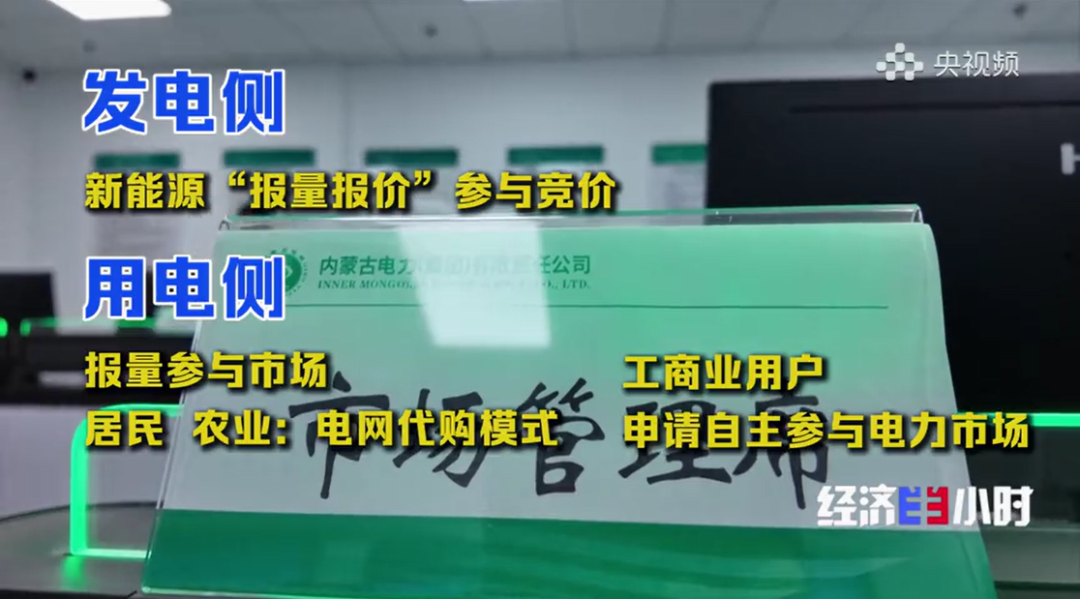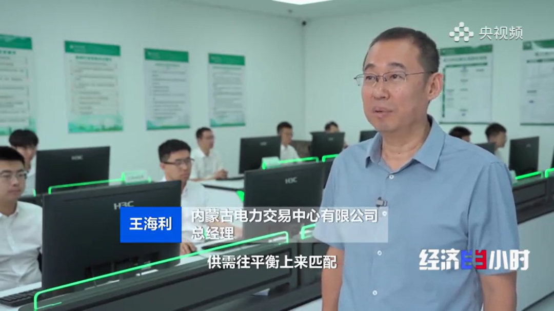 在内蒙古电力交易中心,电子大屏幕上实时显示着各个时段的电价曲线和交易数据。今年上半年这里共完成了约1600亿千瓦时电力交易,平均每度电价格为0.27元,其中新能源发电占比达到37%。