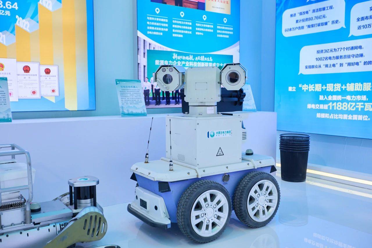 不远处,机器狗巡线机器人正在“模拟上岗”,让人明白电网运维早已进入“智慧时代”。旁边的“蒙电芯”电子标签样品也很吸睛,别看它小巧,却是电网智能化的重要“神经末梢”。