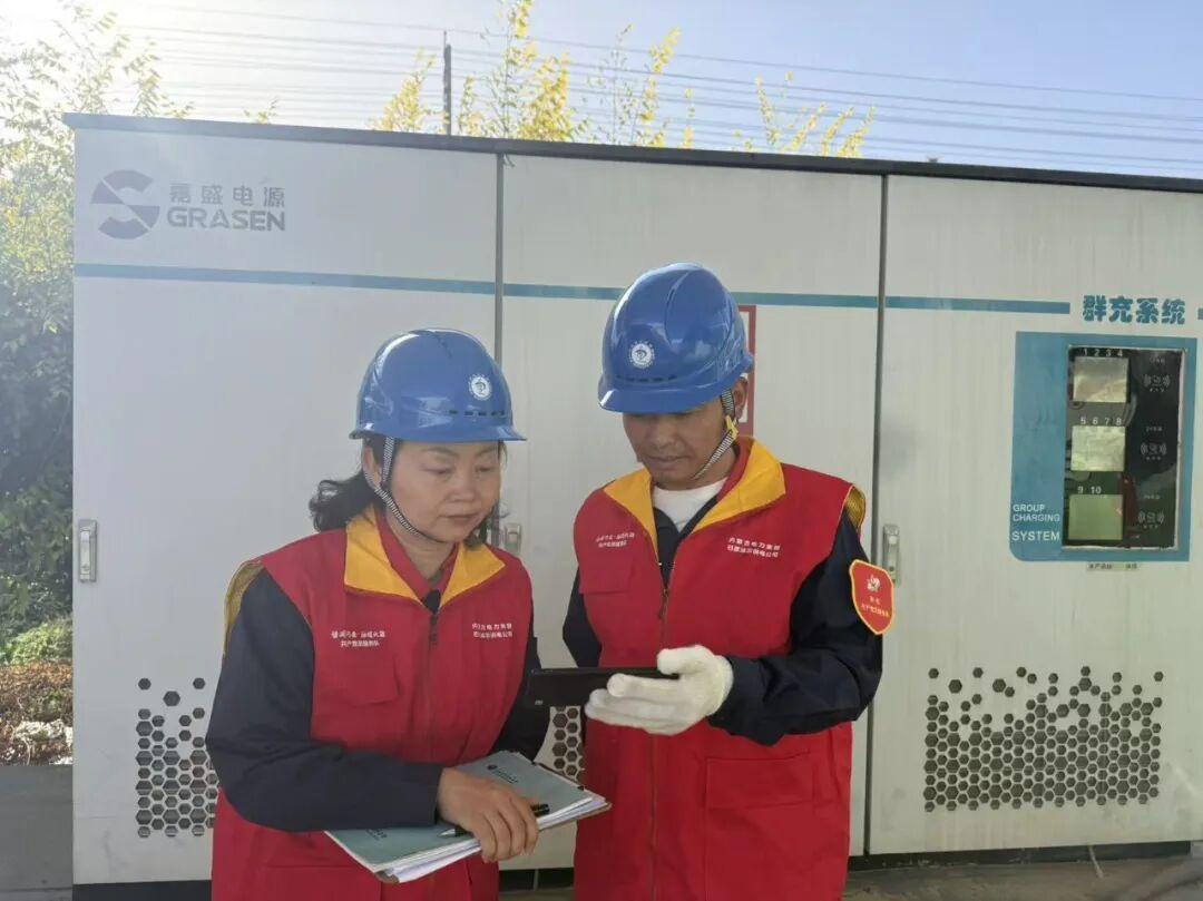 内蒙古超高压供电公司一线值守人员在保电现场收看直播。