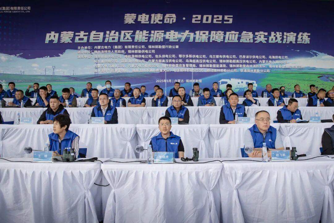 9月11日,为深入贯彻落实习近平总书记关于总体国家安全观和应急管理重要论述,落实“四个革命、一个合作”能源安全战略以及自治区能源电力保供工作要求,进一步提升电力防灾救灾和重大突发事件处置保障能力,内蒙古电力集团、锡林郭勒盟行政公署联合举办“蒙电使命·2025”内蒙古自治区能源电力保障应急实战演练。本次演练是近年来全区规模最大的一次能源电力保障应急实战演练,国家能源局、华北能源监管局、内蒙古自治区能源局、内蒙古自治区应急管理厅以及锡林郭勒盟行政公署、锡林浩特市委、市政府及有关部门领导现场观摩指导。内蒙古电力集团党委副书记、总经理张晓虎宣布演练启动,党委委员、副总经理闫军担任演练总指挥。