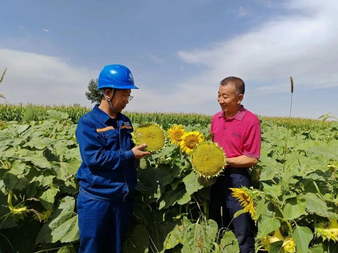 内蒙古电力集团鄂尔多斯供电公司的工作人员深入田间地头,详细了解种植户的用电需求,对用电设备进行全面检查,合理安排检修计划,为葵花的健康生长提供坚实的电力支撑。在蒙西镇渠畔村葵花地里,种植户满脸笑意地对供电公司的工作人员说:“今年葵花长势特别好,增产增收不成问题。以前葵花开得旺的时候,最怕的就是电压不稳,抽水泵抽不上水,灌溉成了大问题。自从你们给我们换了容量大的变压器,浇地再也不愁了。”
