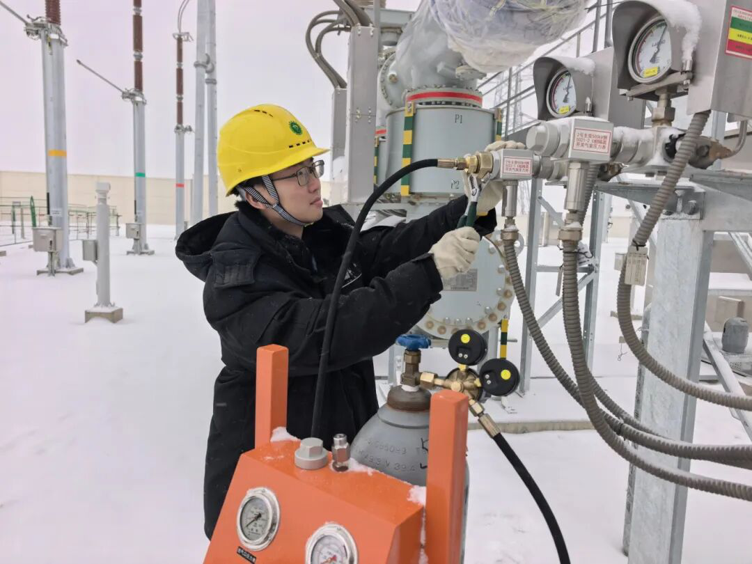 锡林郭勒超高压供电公司变电管理处所辖各变电站立即启动恶劣天气应急预案,筑牢供电 “生命线”。各站通过 “人工 + 智能” 立体巡检,加密特巡频次,重点排查设备覆冰、SF6 压力、充油设备油位等关键指标,用红外测温仪实现发热隐患 “拉网式” 排查。运维人员顶风冒雪清理端子箱积雪、清除设备覆冰,细致检查密封与加热装置,确保无死角防御。