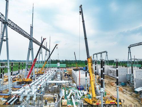 8月4日,英华500千伏变电站建设现场,包头供电公司正在紧张有序地进行着施工作业,全力推进工程建设进度。截至发稿时,工程整体架构基础已完成,主控室、保护室等建筑物成功封顶,设备均已进场,站容已初具规模。